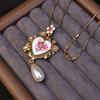Vintage Heart Flower Court-Style Pendant Necklace for Women