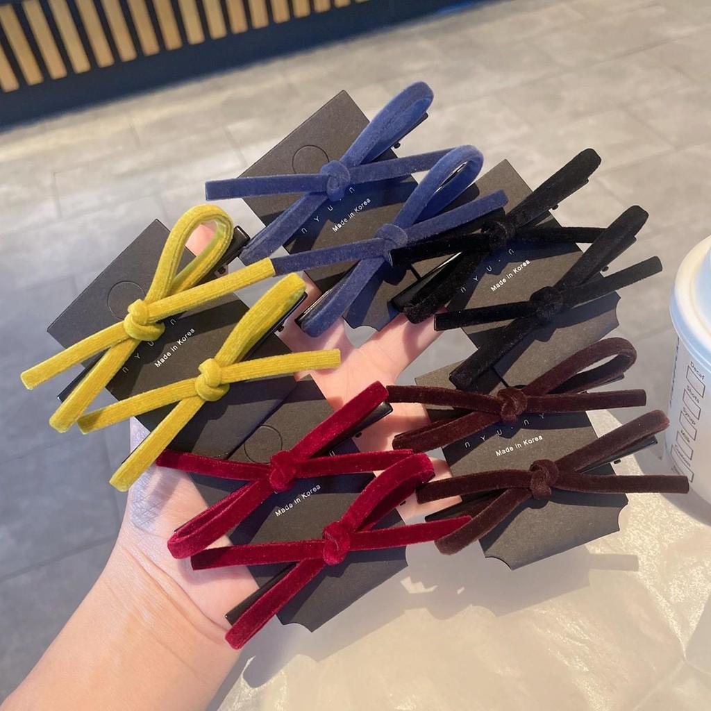 Korean Style Autumn/Winter 2025 Solid Color Bow Hair Clip for Bangs & Ponytails