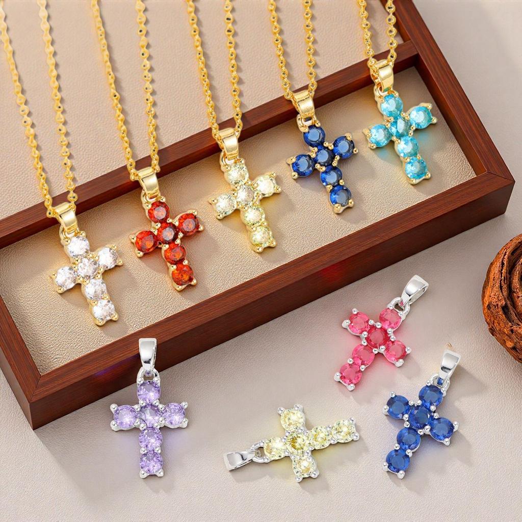 Elegant European and American Zircon Cross Necklace for Women
