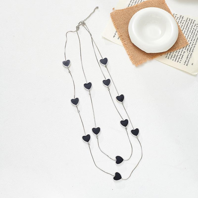 Double-Layer Black Drip Oil Necklace - Long Autumn/Winter Sweater Chain (NL088)