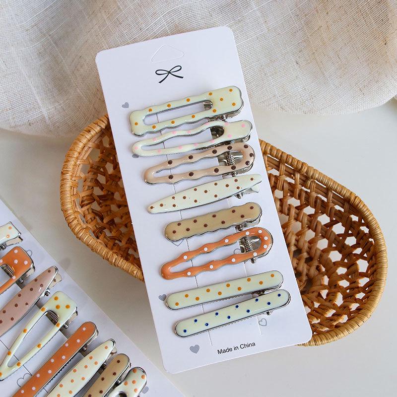 Multi-Color Polka Dot Geometric Metal Drip Glaze Hair Clip Set - Water Drop & Forehead Bangs Hairpins
