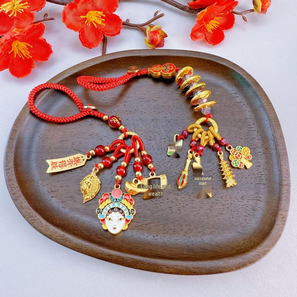 Ancient Gold Sand Cloisonné Enamel Keychains: Stylish Couple Pendants & Lucky Charms for Mobile Phones.
