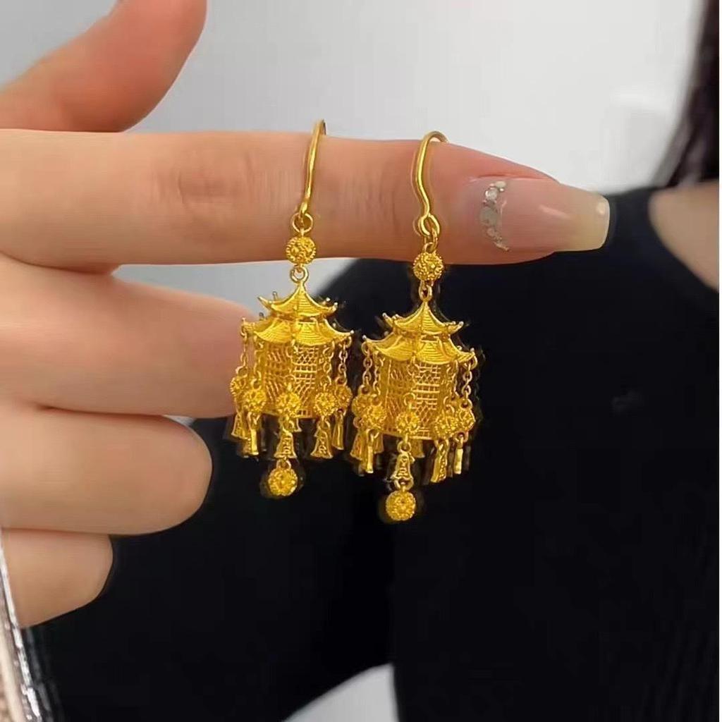 Gold-Plated Hanfu Wedding Lantern Dangle Earrings - New Chinese Style Cheongsam Studs