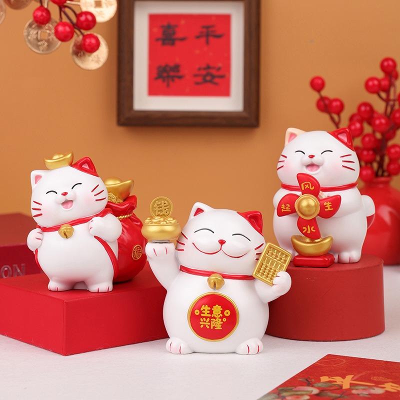There Are Various Types of Home Decorations Such As The Lucky Cat Ornaments, Festive Tablecloths, and Resin Handicrafts for The Entrance Hall