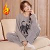 Experience cozy comfort with the Women's Cartoon Wool-Silk Flannel Pajamas, perfect for autumn and winter. This warm, outdoor-friendly set features long sleeves and is crafted from a luxurious blend of mulberry silk wool, artificial silk material, and wool material. Designed for those who appreciate style and warmth, these pajamas offer a playful yet sophisticated look with charming cartoon details. Ideal for lounging indoors or taking a leisurely stroll outdoors, this set combines functionality with a gentle touch of elegance.