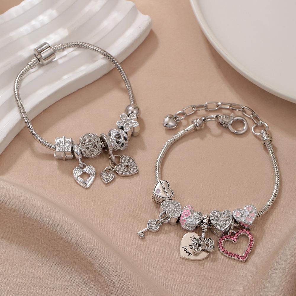 Pan's DIY Rhinestone Heart & Key Lock Beaded Bracelet for Women – Fashion Jewelry Gift