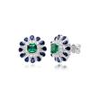 Retro Sunflower Pendant & Synthetic Emerald Stud Earrings with Open Ring - Gemstone Set for Women