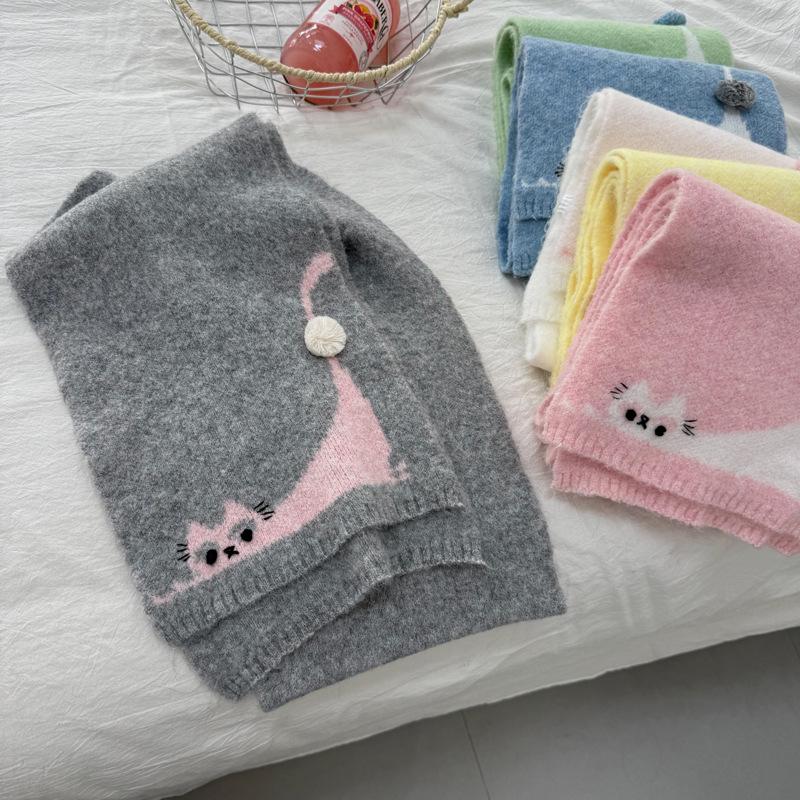 Winter 2025 Korean-Japanese Style Cute Kitten Knit Neck Warmer Scarf for Women