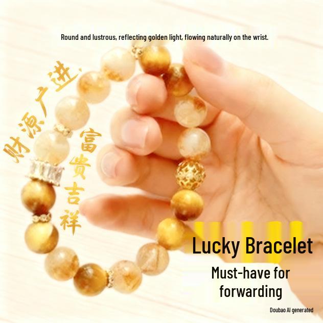 Women's Gold Tiger Eye & Yellow Crystal Bracelet - Attract Wealth, New Chinese Style, High-End Design.
