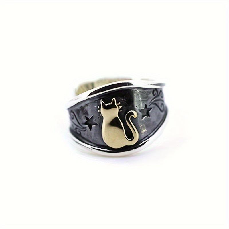Retro Thai Silver Cat Star Open Ring for Men and Women