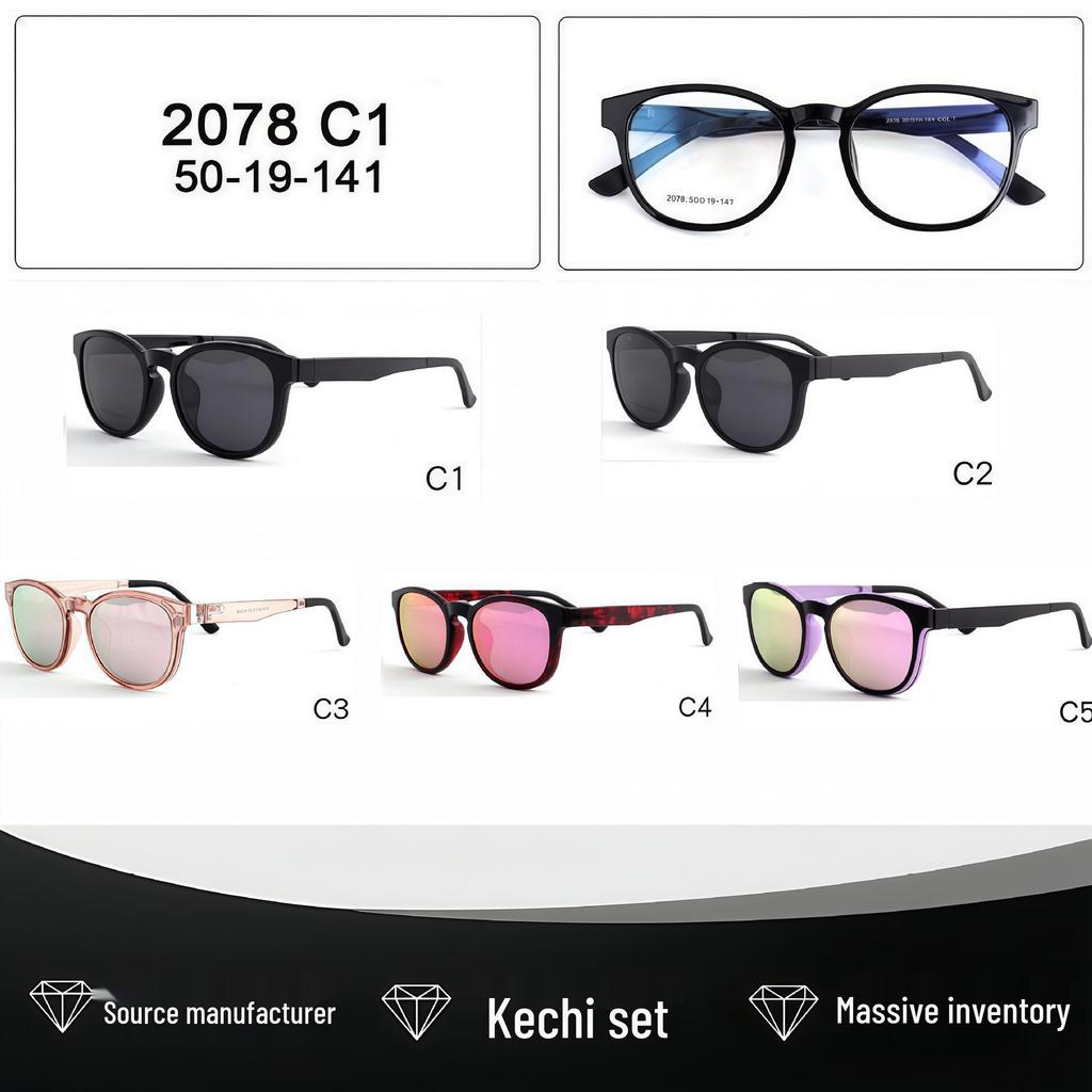2078 Round Frame TR90 Magnetic Eyewear Set: Multi-Color Clip-On Polarized Sunglasses for Men and Women