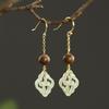 Handmade Chinese-Style Hetian Jade & Agarwood Earrings with Ear Hooks - Versatile Design for Women
