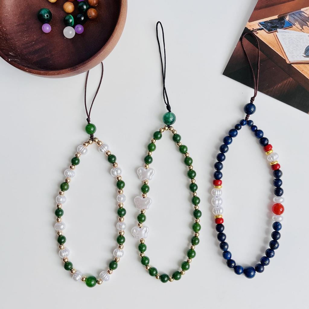 Vintage Chinese-Inspired Pearl & Butterfly Stone Phone Lanyard