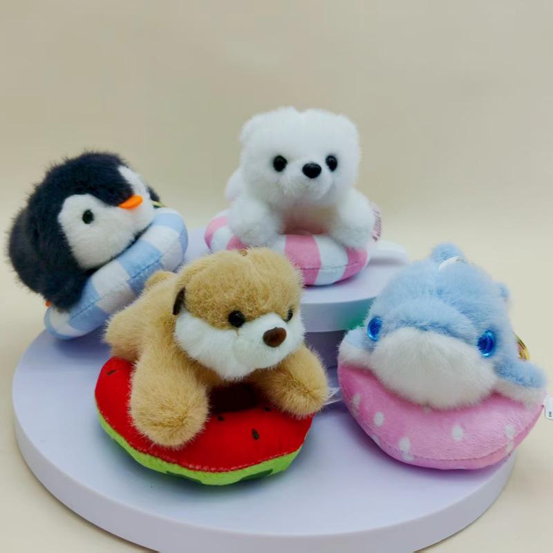 Creative Inflatable Pool Ring & Cute Animal Keychain Set - Dolphin, Penguin, Plush Doll & Backpack Pendant Gift
