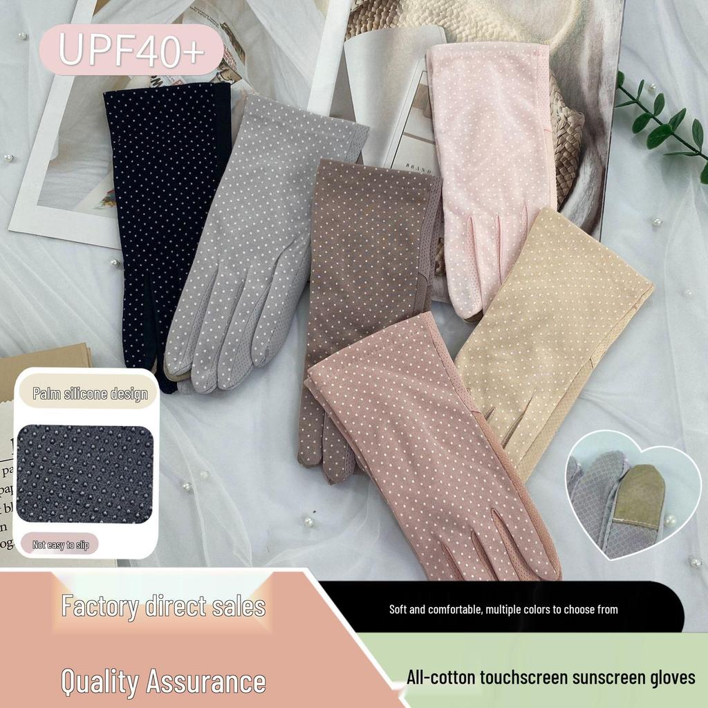 Women's Summer UV Protection Polka Dot Touchscreen Gloves - Non-Slip, All-Cotton for Driving and Cycling