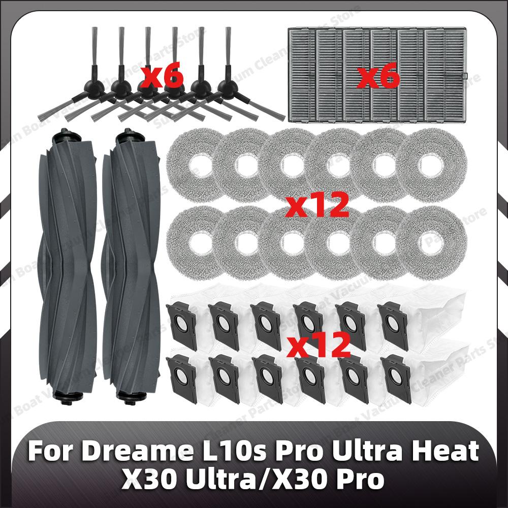 Compatible for Dreame L10s Pro Ultra Heat / X30 Ultra / X30 Pro Main Side Brush HEPA Filter Mop Pad Dust Bag Spare Parts