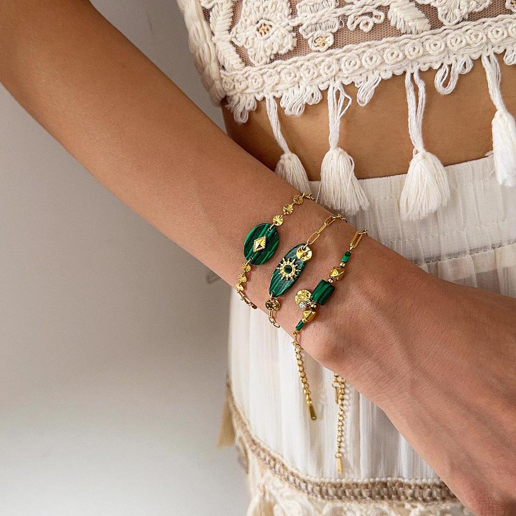 Elegant Malachite Stainless Steel Pendant Bracelet - Unique Luxury Design for Women