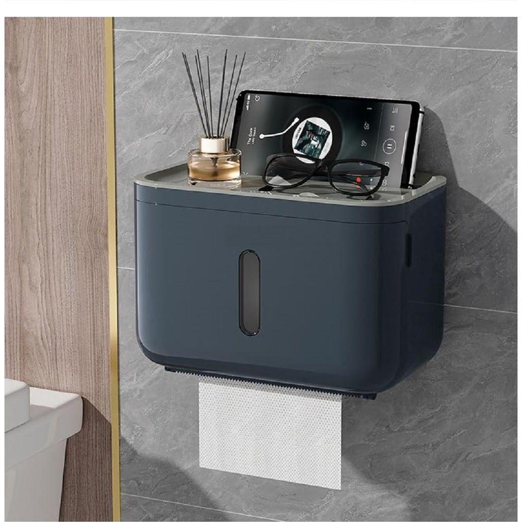 Bathroom with Mobile Stand, Wall Mounted Tissue Paper Holder, Toilet Paper Roll Holder for Bathroom, Bathroom Accessories (Navy Blue)