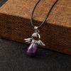 Amethyst Rose Quartz Angel Wing Pendant with Aventurine Stone