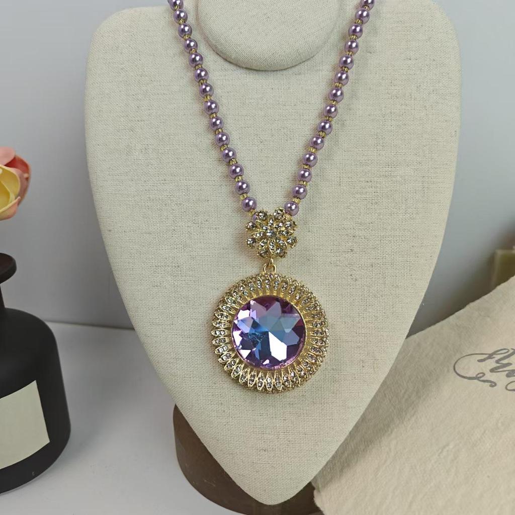 Purple Pearl Long Necklace for Women: Luxurious Fall/Winter Accessory for Sweaters, Cheongsams, and More.