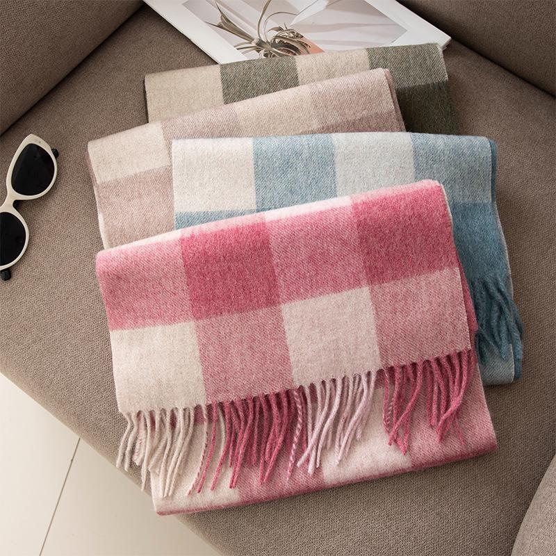 100% Wool Plaid Scarf for Women - High-end, Warm, Versatile with Tassels - Perfect for Autumn and Winter