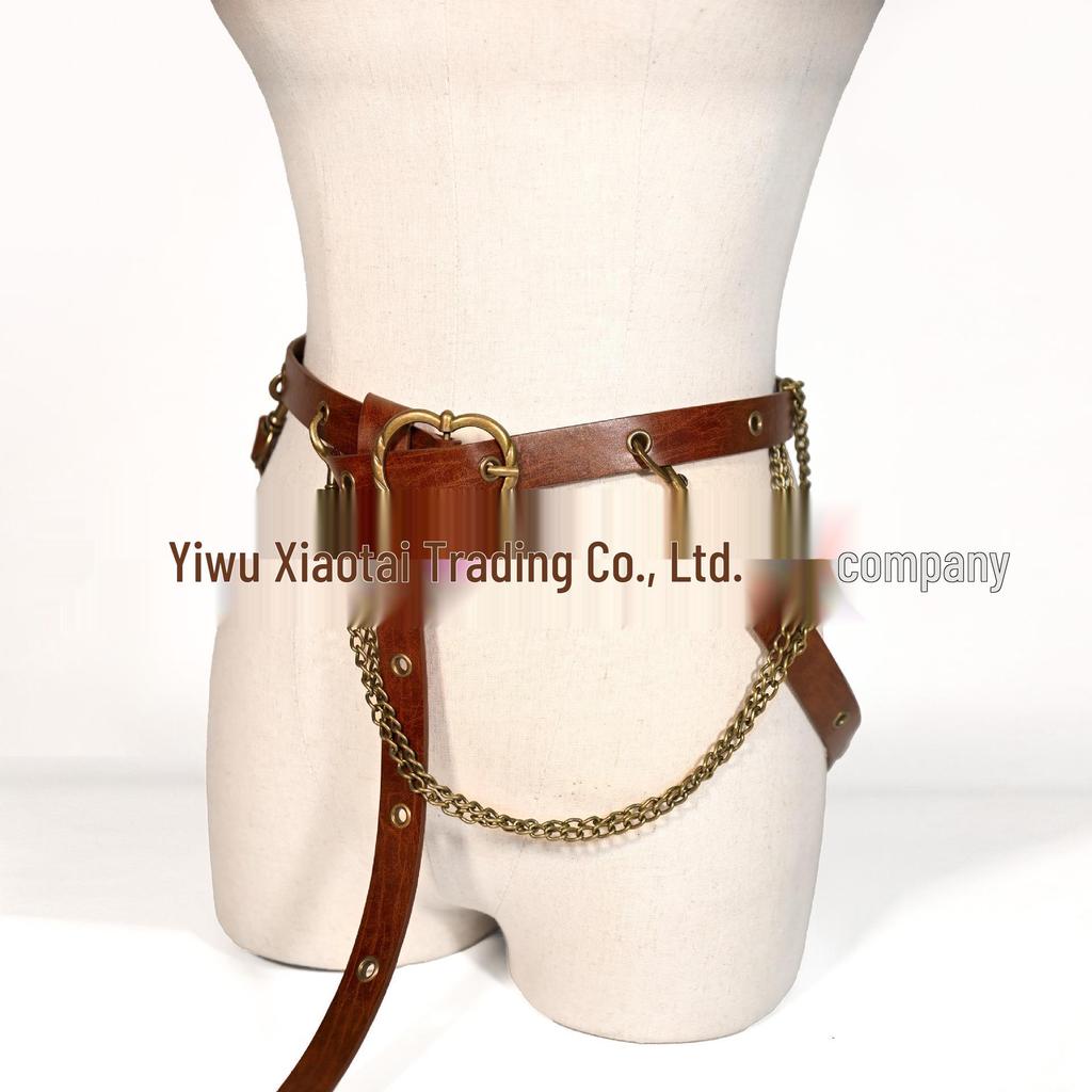 Nordic Viking Style Medieval Thin Leather Chain Belt - Retro Punk Decoration