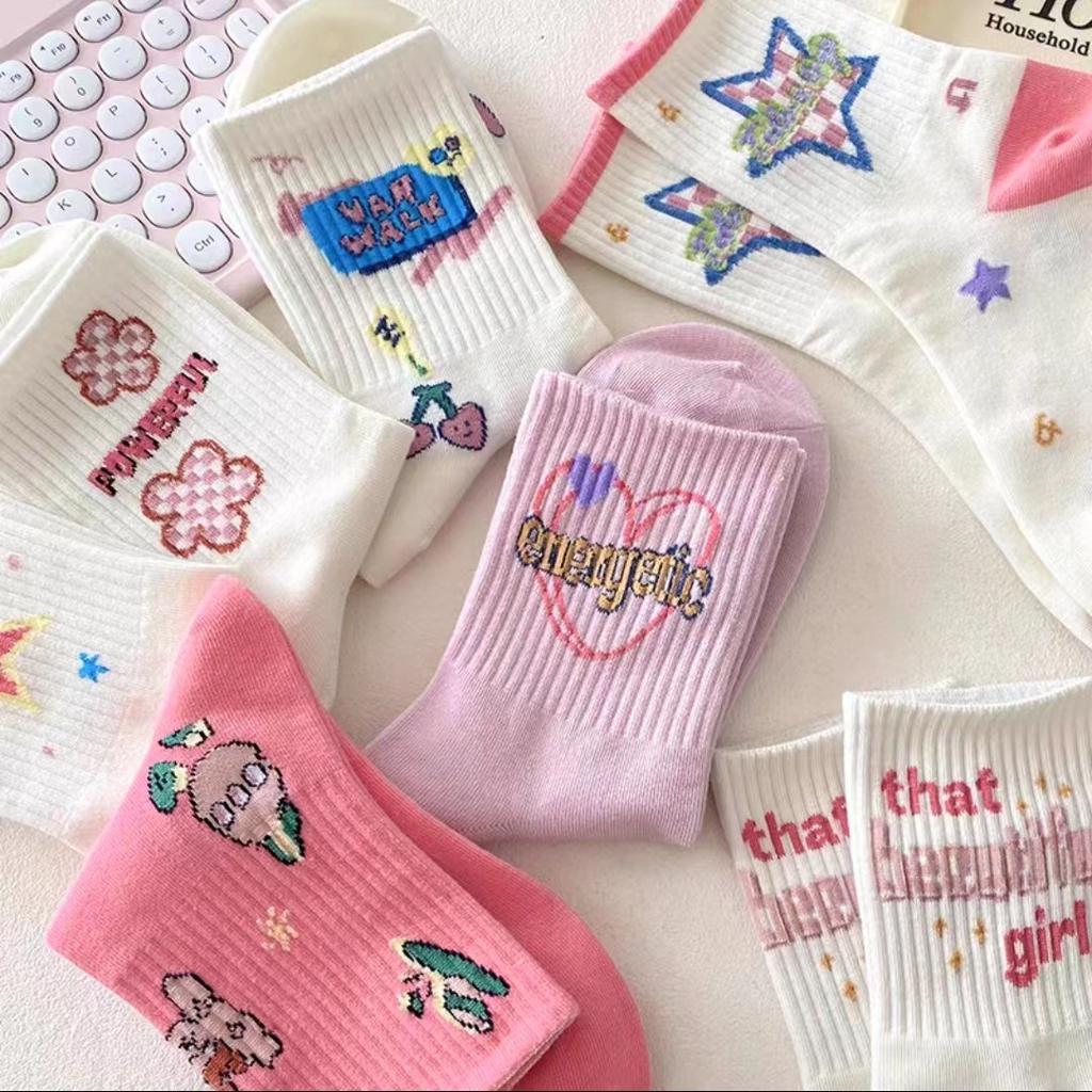 Female Spring and Autumn Lovely Cartoon Tube Pile Cotton Socks