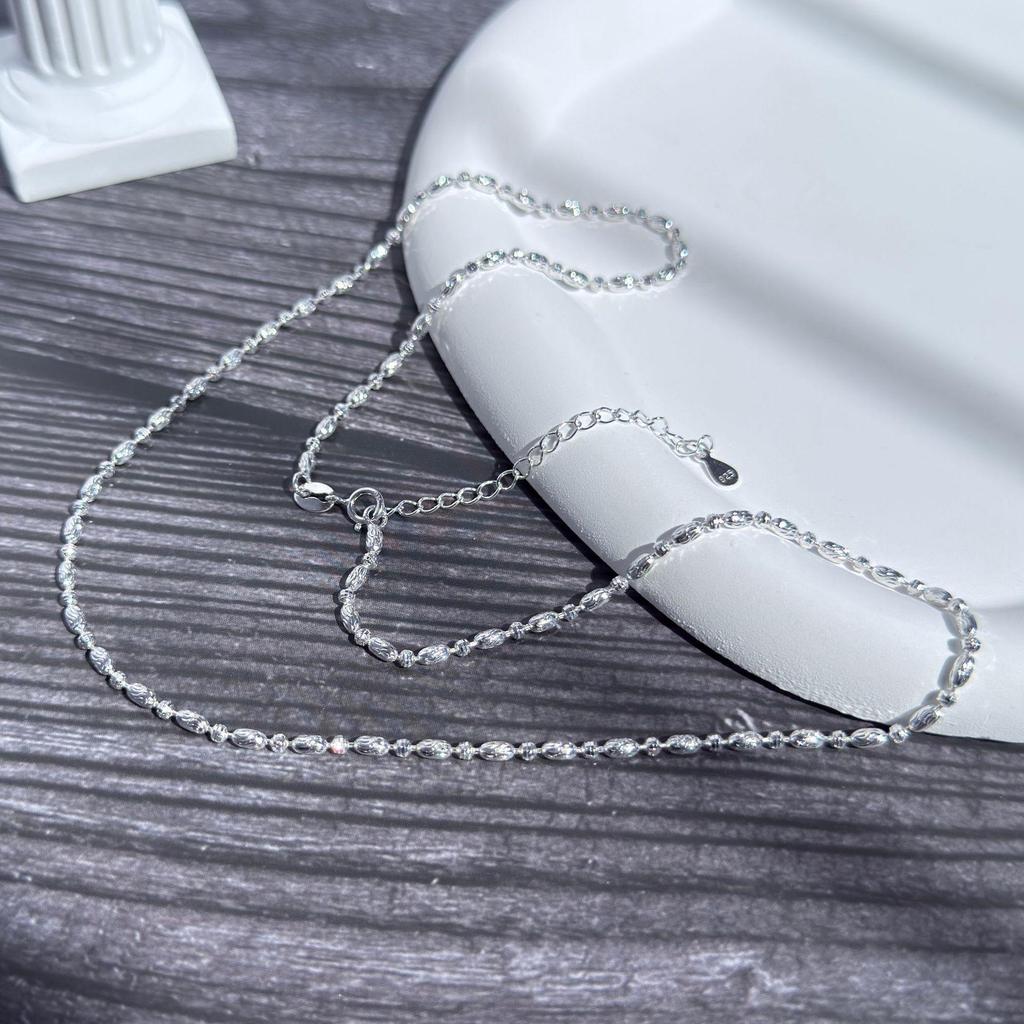 S925 Sterling Silver Women's Carved Knife Bead Necklace - Shiny Round Bead Chain, High-End Long Sweater Chain for Autumn/Winter