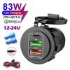 4-Ports Car Charger with LED Voltmeter PD Type C QC3.0 Fast Charging USB Power Outlet Adapter Waterproof 12V/24V for Car Boat