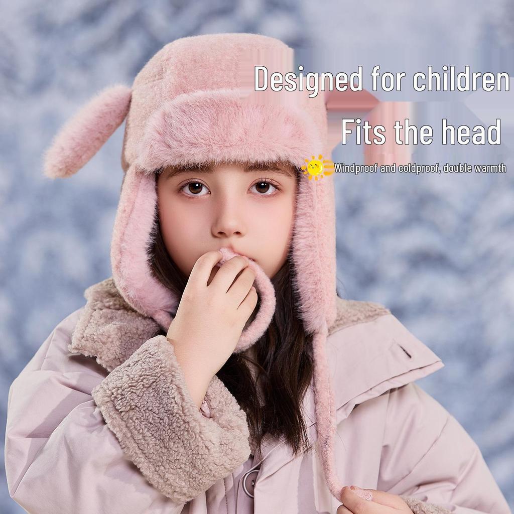 Kids' 2025 Autumn/Winter Lei Feng Hat: Thickened Pom-Pom Ear Protection, Plush Warmth for Boys & Girls.