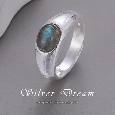 Women's 925 Sterling Silver Labradorite Open Ring – High-End Natural Crystal Vintage Jewelry