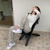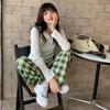 Women's Lambswool Plaid Fleece-Lined High-Waisted Loose Straight-Leg Wide-Leg Pants for Autumn/Winter 2025