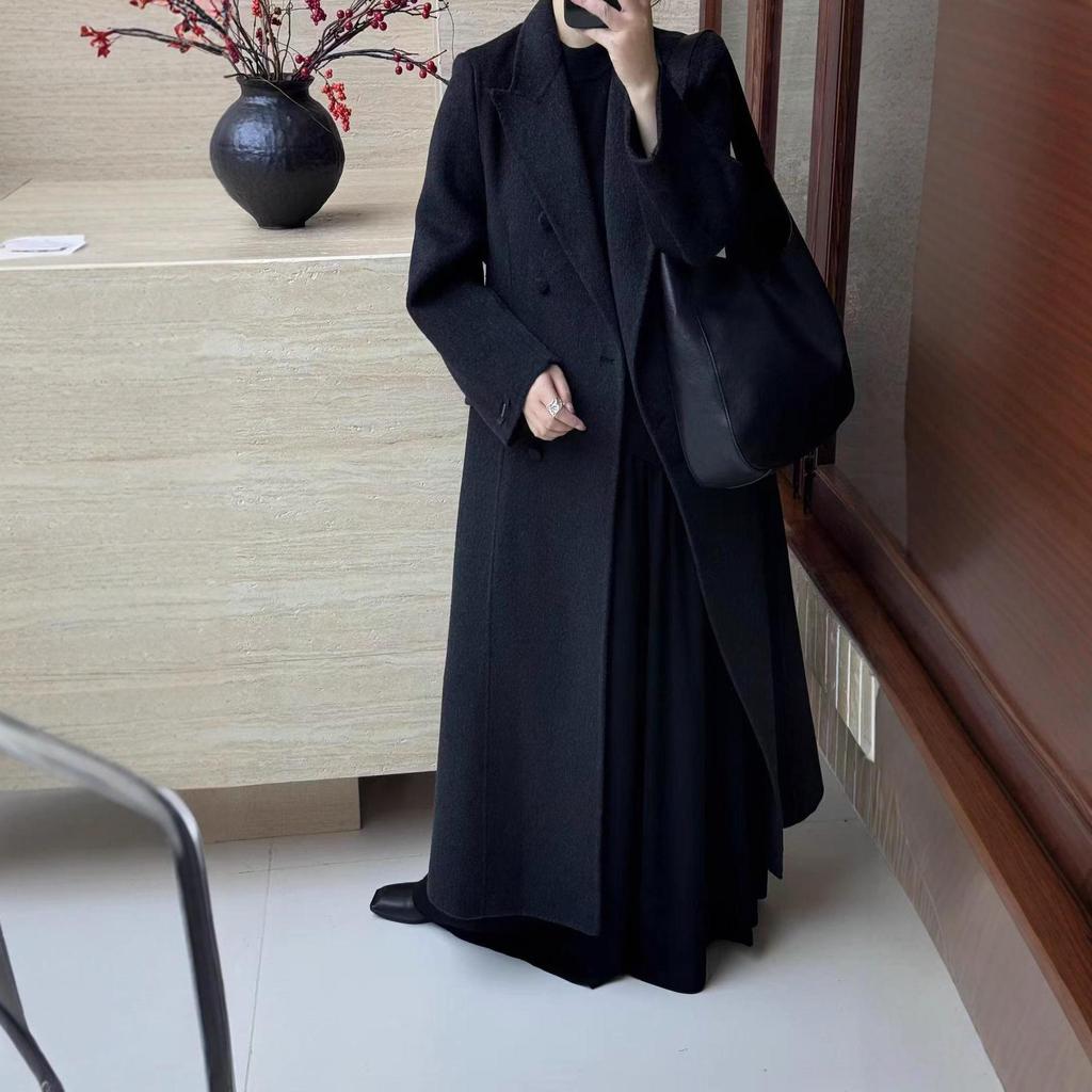 Urban Silhouette: Women's Double-Breasted Wool Coat with Suit Collar, Korean Style Slimming Design for Fall/Winter.