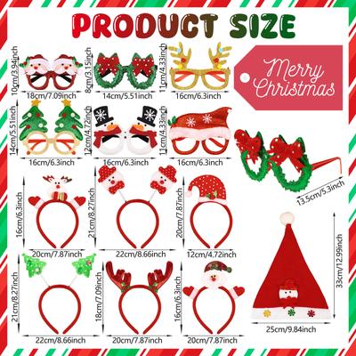 18 PCS Christmas Headbands And Glasses Frames Christmas Hat Set Christmas Headbands Christmas Hat Christmas Party Glasses Frames
