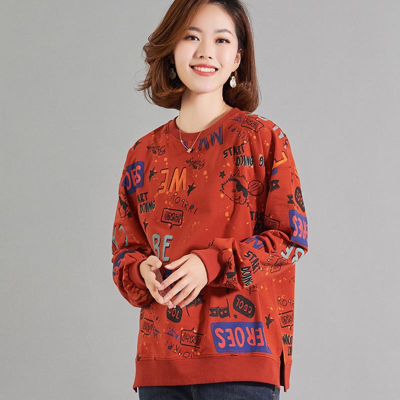 This pure cotton sweatshirt is designed specifically for middle-aged and elderly women, offering both comfort and style. It features a loose fit with a round neckline and long sleeves, ensuring a relaxed yet flattering look. The eye-catching print decoration adds a touch of elegance to the design. Ideal for everyday wear, this sweatshirt provides a slimming effect while maintaining comfort, making it a versatile addition to your wardrobe.