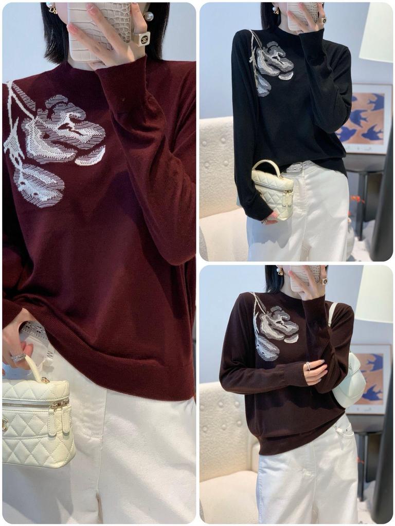 Autumn/Winter Women's Merino Wool Sweater - Long Sleeve Jacquard Top
