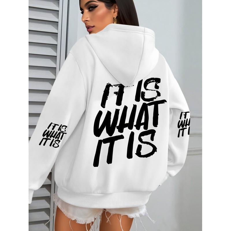 Embrace comfort and style with this Women's Letter Print Winter Hoodie, designed for a relaxed fit. The long sleeves and hooded neckline provide cozy coverage, while the lightweight polyester material is perfect for layering. Featuring practical pockets for added convenience, this hoodie combines functionality with a casual-chic aesthetic, making it a versatile addition to your winter wardrobe.