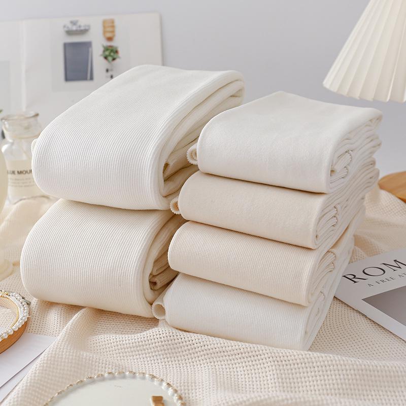 Women's High-Waist Cotton Leggings - Thick, Velvet-Lined, Stirrup Tights In Milk White & Beige for Autumn/Winter
