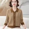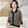 Introducing a stylish and cozy addition to your fall wardrobe, this women's striped knit sweater is crafted from soft polyester, ensuring comfort throughout the day. Designed with a unique turn-down collar and a loose fit, it offers a flattering silhouette that complements any casual outfit. The sweater features a thin texture, making it an ideal layering piece, while the long sleeves provide extra warmth during cooler days. With elegant patchwork and quilted decorations, this sweater adds a touch of sophistication to your style, perfect for trendy moms on the go.