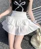White Pleated High Waist A-Line Mini Skirt for Women - Summer Petite Slimming Design
