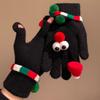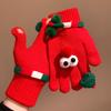 Funny and Cute Red Christmas Tree Big Eyed Gloves for Women In Winter Knitted Plush Warm Five Finger Windproof and Cold Proof