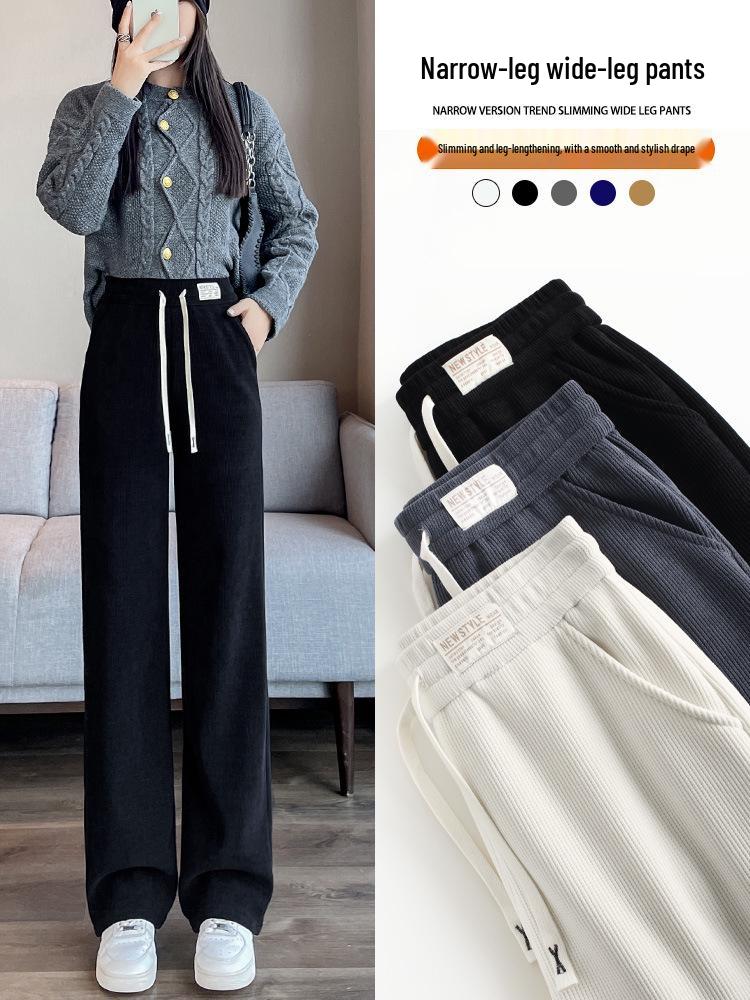 Women's Chenille Wide-Leg Pants - New 2025 Spring & Autumn Collection, Small Size, European Cotton Velvet, Fleece-Lined, Casual Straight-Leg Design.