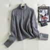 2025 Puyuan Autumn/Winter Wool Cable Knit Stand Collar Zip-Up Sweater for Women - Soft Texture