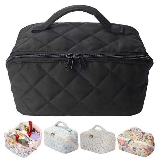 Portable Travel-Friendly Design: Featuring a comfortable handle and smooth two-way zippers, this floral quilted toiletry bag is designed for easy portability. The wide opening provides a clear overview of contents, while the lightweight yet sturdy construction fits perfectly in suitcases or handbags for stylish and hassle-free packing.