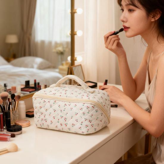 Portable Travel-Friendly Design: Featuring a comfortable handle and smooth two-way zippers, this floral quilted toiletry bag is designed for easy portability. The wide opening provides a clear overview of contents, while the lightweight yet sturdy construction fits perfectly in suitcases or handbags for stylish and hassle-free packing.