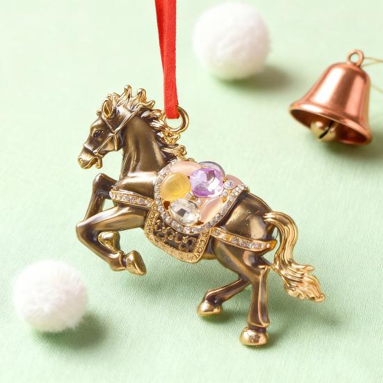 Horse Christmas Ornament Rhinestones Tree Decor Lucky Zodiac Animal Theme Festive Holiday Decoration