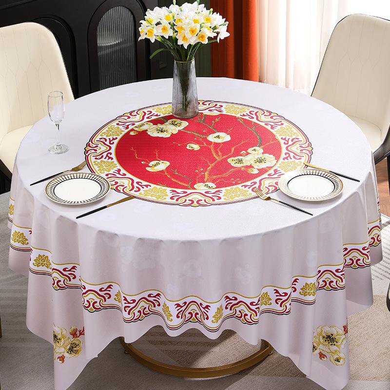 Baxian Table Tablecloth Waterproof, Oil-Proof And Anti-Scalding Leave-In Tablecloth Hotel Round Table Cloth Dining Table Cloth Plum Blossom
