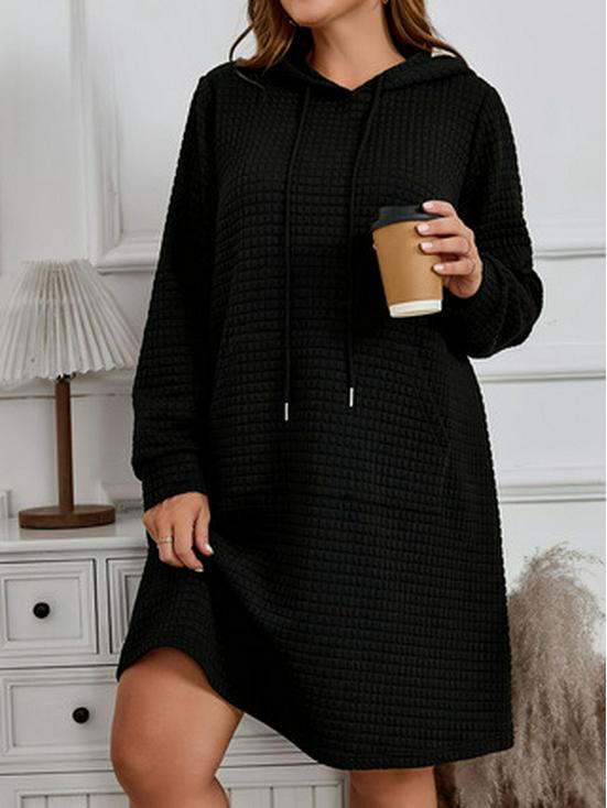 Embrace comfort and style with this Plus Size Women's Hooded Drawstring Dress, designed for the autumn and winter seasons. Made from high-quality polyester, this dress offers a soft and durable wear. Its solid color design provides a versatile and elegant look, suitable for various occasions. The hooded neckline adds an extra layer of coziness, while the long sleeves ensure warmth during cooler days. With a functional drawstring, you can adjust the fit to your liking, making this dress a perfect combination of fashion and practicality.