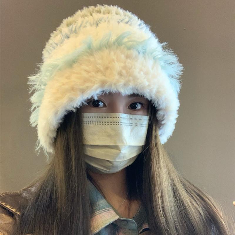Korean Style Face Showing Small Plush Knitted Hat for Women In Autumn and Winter New Thickened Warm Ear Protection Woolen Hat Big Head Basin Hat