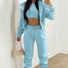 Get ready for the upcoming season with this versatile and comfortable 3-piece set designed for active women. The set includes a solid color hoodie and matching casual sport pants, both crafted from high-quality polyester for durability and a soft touch. Emphasizing a sportive style, this ensemble offers the perfect blend of fashion and function, ideal for workouts or leisurely days out. The sleek, minimalist design allows for easy pairing with your favorite accessories, making it a staple addition to your wardrobe.